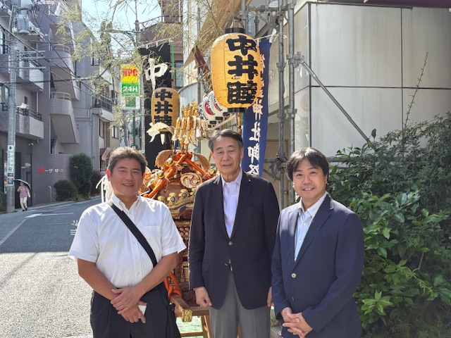 新宿大久保にある皆中稲荷神社と落合地区の中井御霊神社の祭礼に合わせ御神酒所回りをしました。中井御霊神社のお神酒所は三雲たかまさ都議と小野裕次郎区議と一緒に回りました。