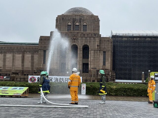 ついで新宿区内3消防団の合同訓練。神宮外苑絵画館前の会場には山口かおる区議も顔を見せていました。
