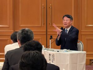 柚木道義議員から自身の政策勉強会で講師をしてほしいと依頼があり、「米・ガソリン・食料品は値下げ、手取り・年金は底上げの社会実現へ~令和版・税と社会保障一体改革」をテーマにガソリン税減税や金融所得課税など税や経済の話を中心に立憲民主党の政策について、話をしました。