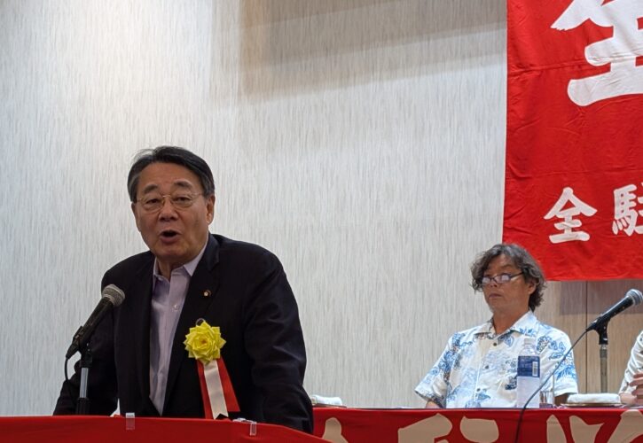 基地で働く皆さんの労働条件を決める「特別協定」の期限が2027年3月に迫っていますから、この改定が満足の行く内容となるよう議連の仲間と活動すると挨拶しました。