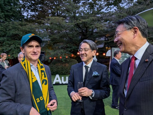 ラグビー日本代表とのテストマッチを行うために来日したオーストラリア代表「ワラビーズ」の歓迎レセプションに出席しました。