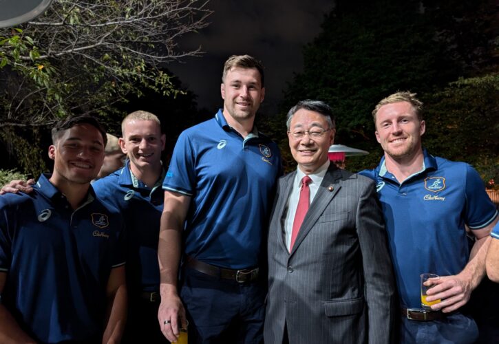 ラグビー日本代表とのテストマッチを行うために来日したオーストラリア代表「ワラビーズ」の歓迎レセプションに出席しました。