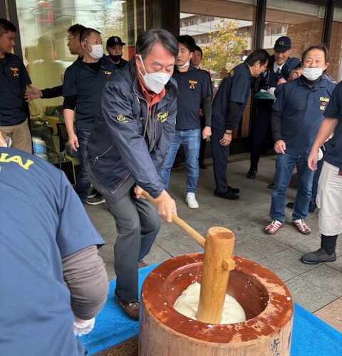 肌寒い勤労感謝の日。地元では早くも餅つきが始まりました。