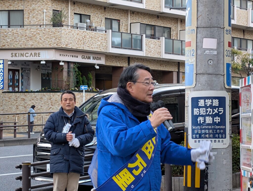 午前中は、野もとあきとし新宿区議、有馬としろう新宿区議、豊島あつし新宿区議、山口かおる新宿区議とともに地域を回り、