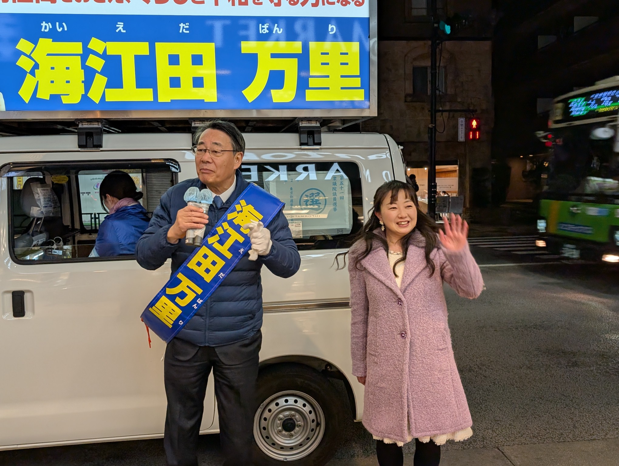街宣車でマイクを握ってくれた山口かおる新宿区議、街頭演説の現場にかけつけてくれた豊島あつし新宿区議、田中ゆきえ新宿区議、中島めぐみ台東区議、ありがとうございました。
