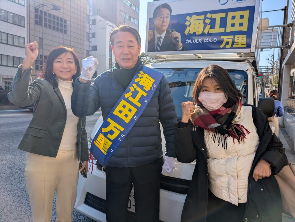 午前中は、岩佐りょうこ千代田区議と千代田区を車で回り、午後は、神保町交差点・サミット神田スクエア店前で街頭演説を行い、米田かずや千代田区議と神田地域を回りました。